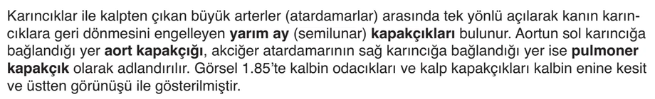 Şimdi ise 2 yeni kapakçık daha eklendi , aort ve pulmoner kapakçık. MEB kitabındaki ifadeye aşağıdaki bölümden ulaşabilirsiniz.