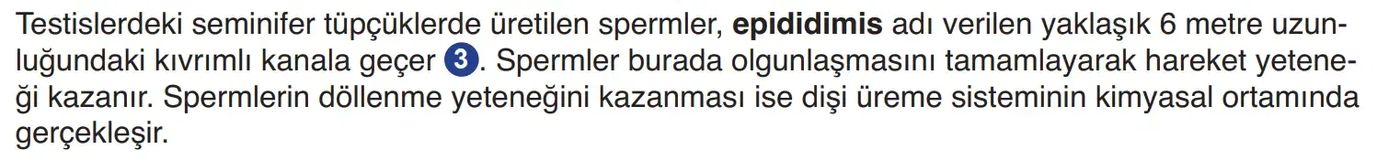 11.sınıf MEB kitabında spermlerin hareket ve döllenme kazandığı yerler ayrıldı. Bundan böyle epididimis kanalında spermler hareket yeteneği kazanırken , döllenme yeteneği kazanması ise dişi üreme sistemi içerisinde gerçekleşir , bilgisi eklendi.